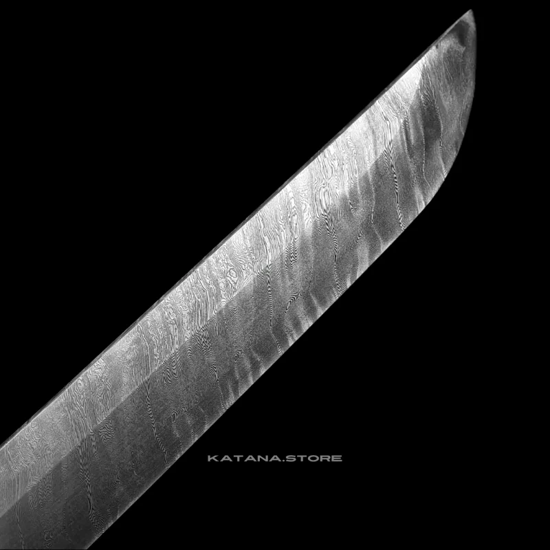 The blade of the Ancient Tachi is a marvel of modern sword-smithing. Crafted from Damascus steel, it features the distinctive wavy patterns that symbolize strength and resilience. The blade’s polished surface reflects light brilliantly, showcasing its superior finish and the skill involved in its creation. The sharpness and durability of Damascus steel make this tachi both a formidable weapon and a stunning display piece.