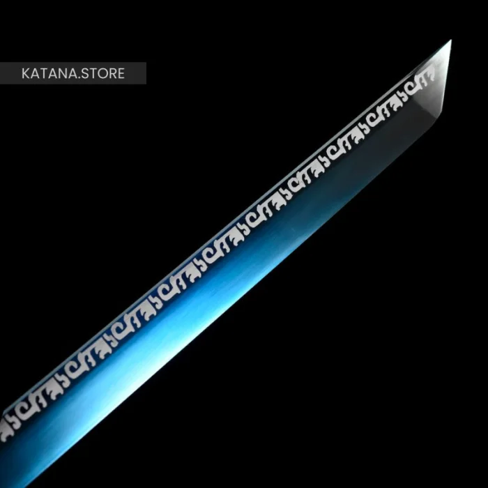 This distinctive blade, engraved with white symbols against a blue background, boasts a straight design typical of ninjatos. The white handle and sheath complement the sword's unique color scheme, creating a harmonious blend of style and tradition. Our symbol-engraved ninjato brings the art of traditional Japanese swordsmanship into the modern age.