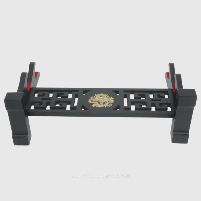 The stand features a majestic golden dragon in the center, meticulously carved to perfection, adding a touch of regal charm to your sword display. The sleek and streamlined design of the stand ensures that your katana is held securely in place, preventing it from slipping or tipping over.