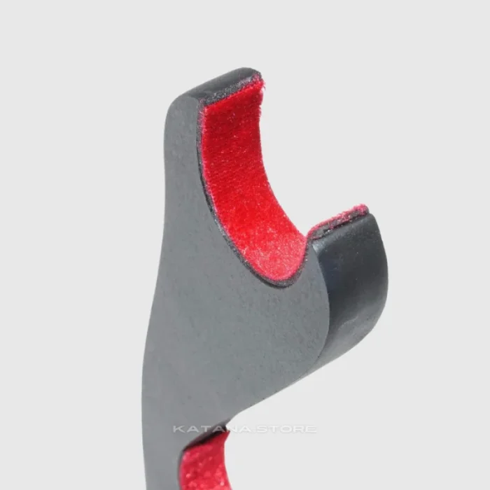 One of the standout features of this Samurai Sword Stand is the soft, red velvet lining on the hollow where the swords rest. This velvet provides a cushioned surface that helps protect the swords from scratches, scuffs, and other forms of damage. The velvet also adds a touch of elegance and sophistication to the stand, creating a beautiful contrast against the polished wood finish.