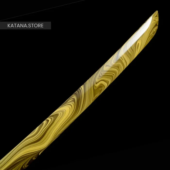 The katana with a yellow blade is an extremely rare weapon. It is crafted from special materials, and the yellow color comes from an alchemical process that only the most skilled swordsmiths can achieve.